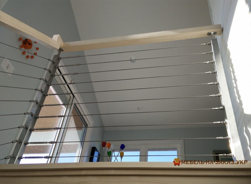 А что, если немного отступить от классических вертикальных балясин из натурального дерева и заменить их лёгкими невесомыми стальными струнами или более толстыми трубчатыми балясинами. Они долговечны, надёжны и обеспечивают достойный уровень защиты, кроме того они удешевляют конструкцию.