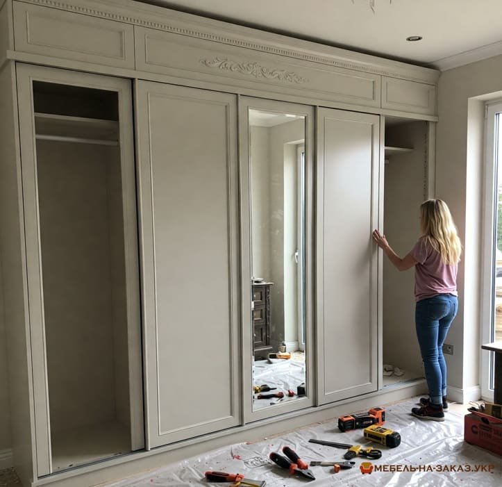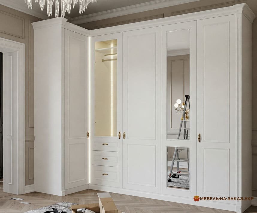 - Внутреннее наполнение: штанги для вешалок, полки, выдвижные ящики.