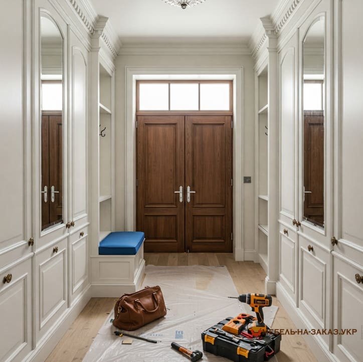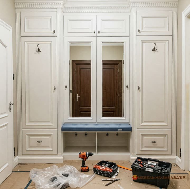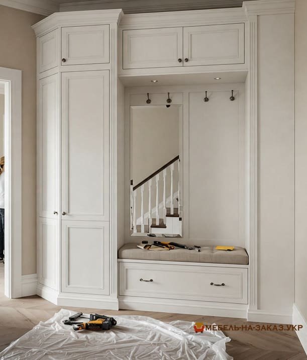 Можем изготовить мебель как по картинке или фотографии, так и разработать проект мебели для вашей прихожей согласно вашим пожеланиям. (шкафы для прихожей в классическом стиле)
