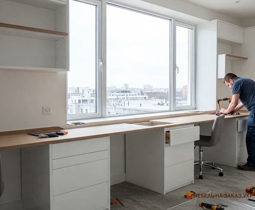 Заказать изготовление мебели около окна
