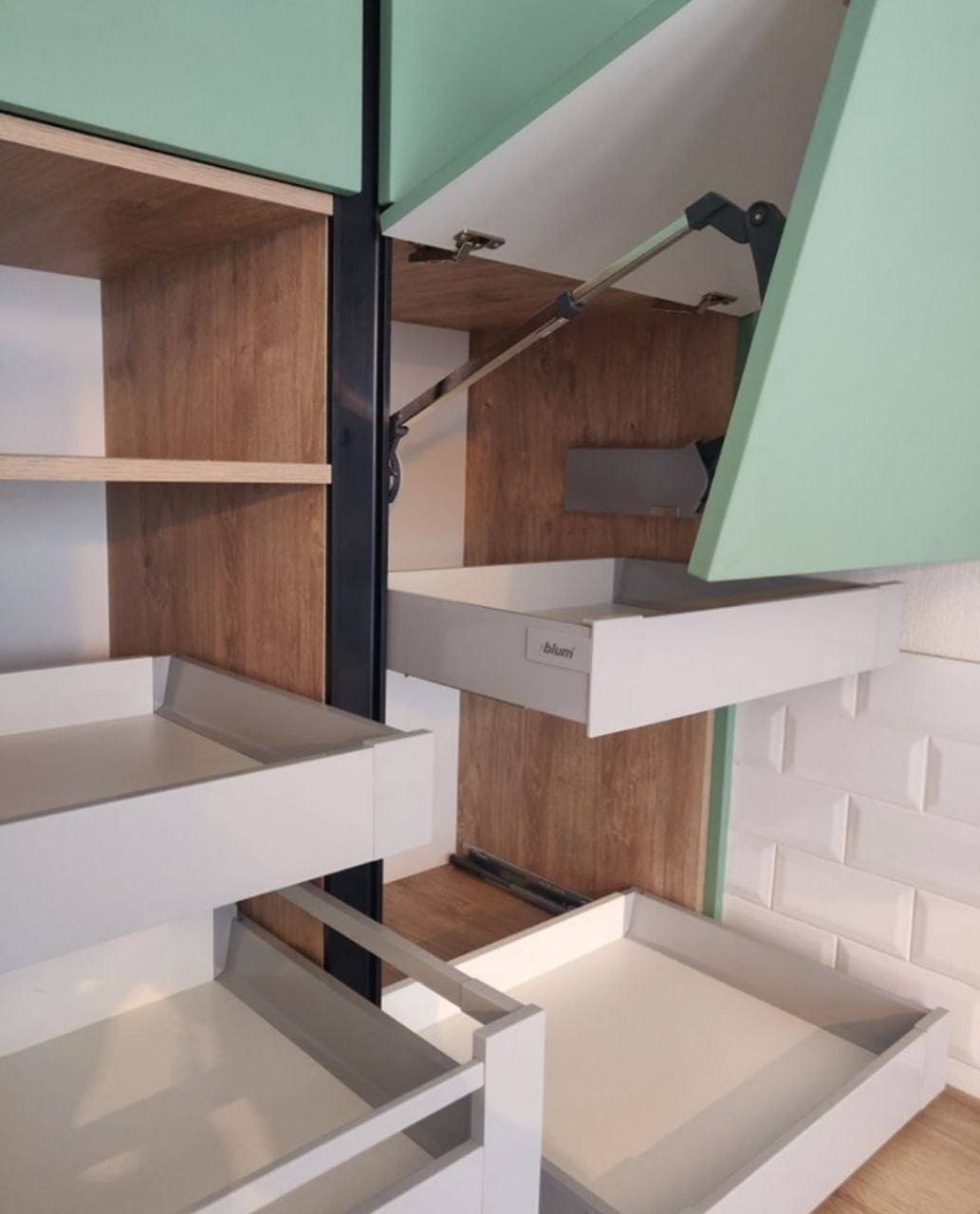 - Якісна фурнітура. У кухні, виготовленій на замовлення, використовується лише якісна фурнітура. Фурнітура – це те, що перетворює набір коробів на кухонні меблі. Наприклад, важко недооцінити важливість гарних меблевих петель, адже саме дверцята шафок ми відкриваємо і закриваємо безліч разів. Перекошені або скрипучі дверцята псують настрій і роблять кухонні меблі некомфортними, тому якість фурнітури стоїть на одному з перших місць.