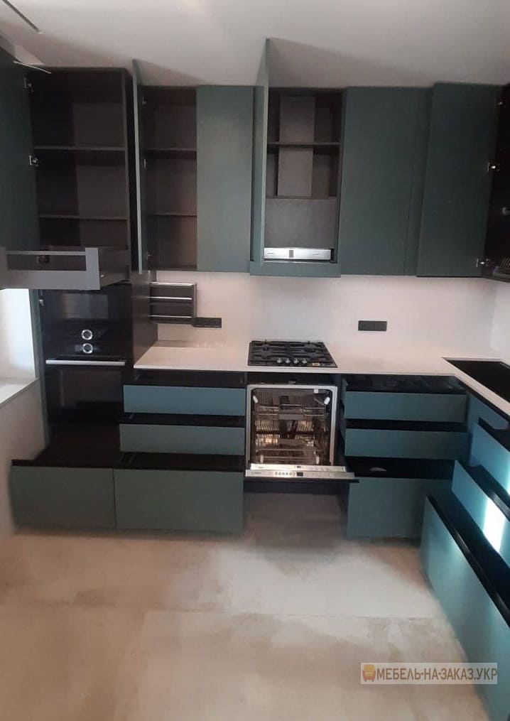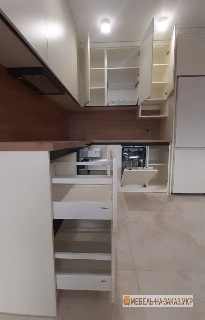 - присутність відділень під вбудовану техніку, ящиків та шаф незвичайних розмірів та дизайну.